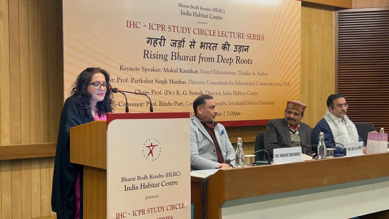 इंडिया हैबिटेट सेंटर और भारतीय दार्शनिक अनुसंधान परिषद के संयुक्त तत्वावधान में ‘गहरी जड़ों से भारत की उड़ान’ (Rising Bharat From Deep Roots) विषय पर एक विशेष व्याख्यान का आयोजन किया गया। यह आयोजन IHC-ICPR के 12-महीने के दर्शन अध्ययन चक्र की दूसरी महत्वपूर्ण कड़ी के रूप में गुलमोहर हॉल में संपन्न हुआ।